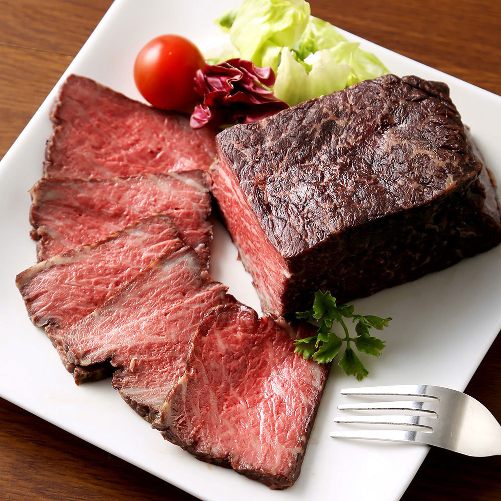 群馬県産上州牛モモ肉のローストビーフ、赤身の旨みが味わえます。