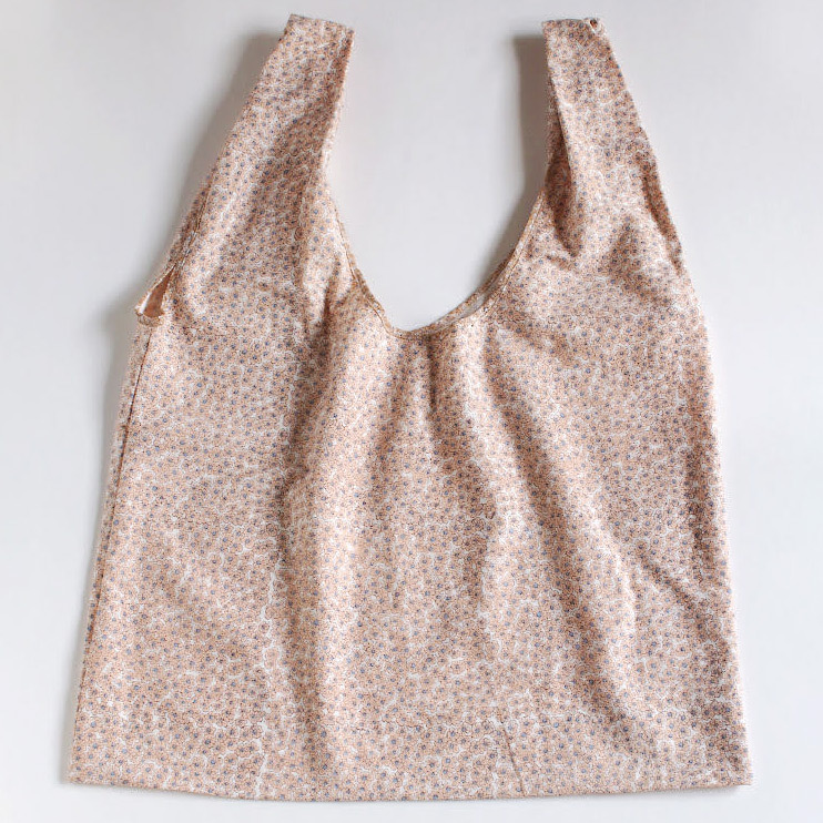 サブバッグに大活躍の「ビッグレジバッグ」。たっぷり大容量なのに、使わない時はくるくる丸めてコンパクトに。ちいさな花柄はお洋服にも合わせやすく、普段使いもおすすめ。万一汚れてしまっても綿100%なので丸洗いできるのも嬉しい。