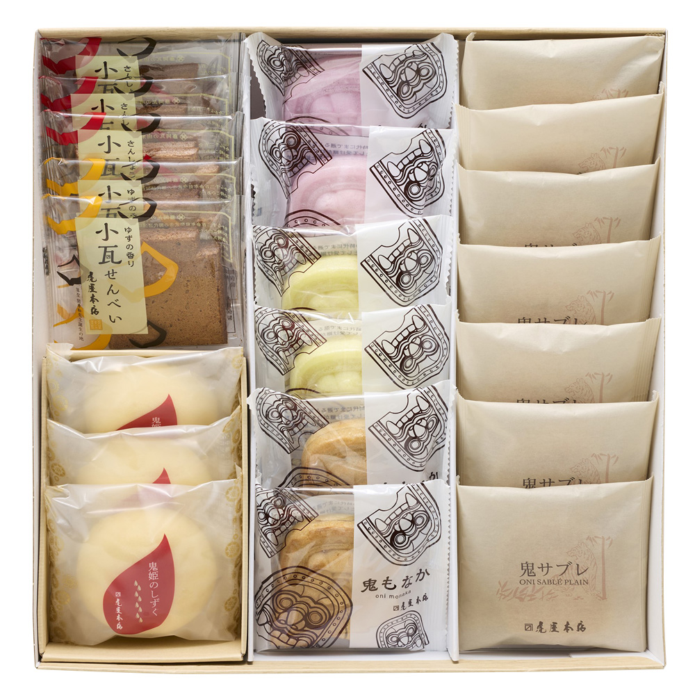 人気商品「鬼姫のしずく」「鬼サブレ」「瓦もなか」「瓦せんべい」の入ったボリュームたっぷりのギフトです。