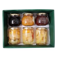プレミアムジャム×3個(苺ジャム・ブルーベリージャム・マーマレード 各1)、フルーツポンチ×3個(プレーン・ブルゴーニュ・ローヤル 各1)化粧箱入
