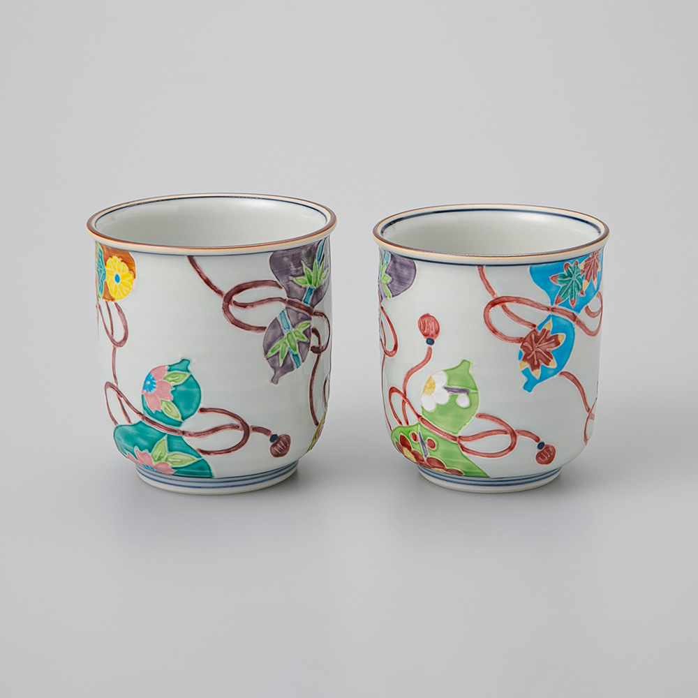 六つの瓢箪の中に一珍で四季の花を表現。年中お使いいただける湯飲みです。ご進物にもおすすめです。