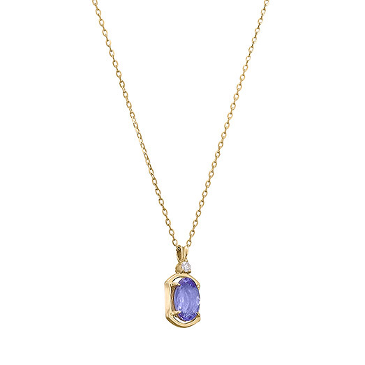 フランス語で記憶・記念を意味する“Memoire メモワール”は、特別な記念日やお守りとして身に着けたい誕生石シリーズです。石を包み込むように縁取られたゴールドのアウトラインはフォトフレームをイメージし、セッティングする石によってフォルムを変えることにこだわったデザイン。深みのある青紫が印象的なタンザナイトをゴールドのラインで縁取り、凛とした美しさを演出。きらめくダイヤモンドを添えたことで、デコルテを美しく彩ります。裏石:ルビー