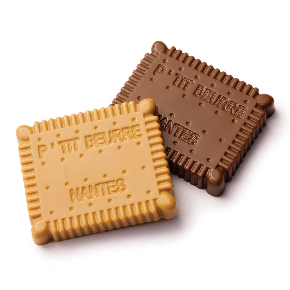 ナントの伝統的なビスケットから着想。見た目は可愛いビスケットなのに食べると驚くほどリッチな食感。ヘーゼルナッツのプラリネの中に砕いたサブレブルトンを入れチョコレートでコーティングしたヴァンサン ゲルレの代表作です。