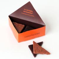 チョコレートをコーティングしたアーモンドスライスを三角形にカットしたアンヌ-フランソワーズ・ブノワのスペシャリテ「キャラモンド(R)」