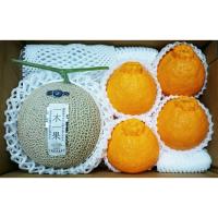 - 静岡県産 クラウンマスクメロン×1玉、熊本県産デコポン×4個