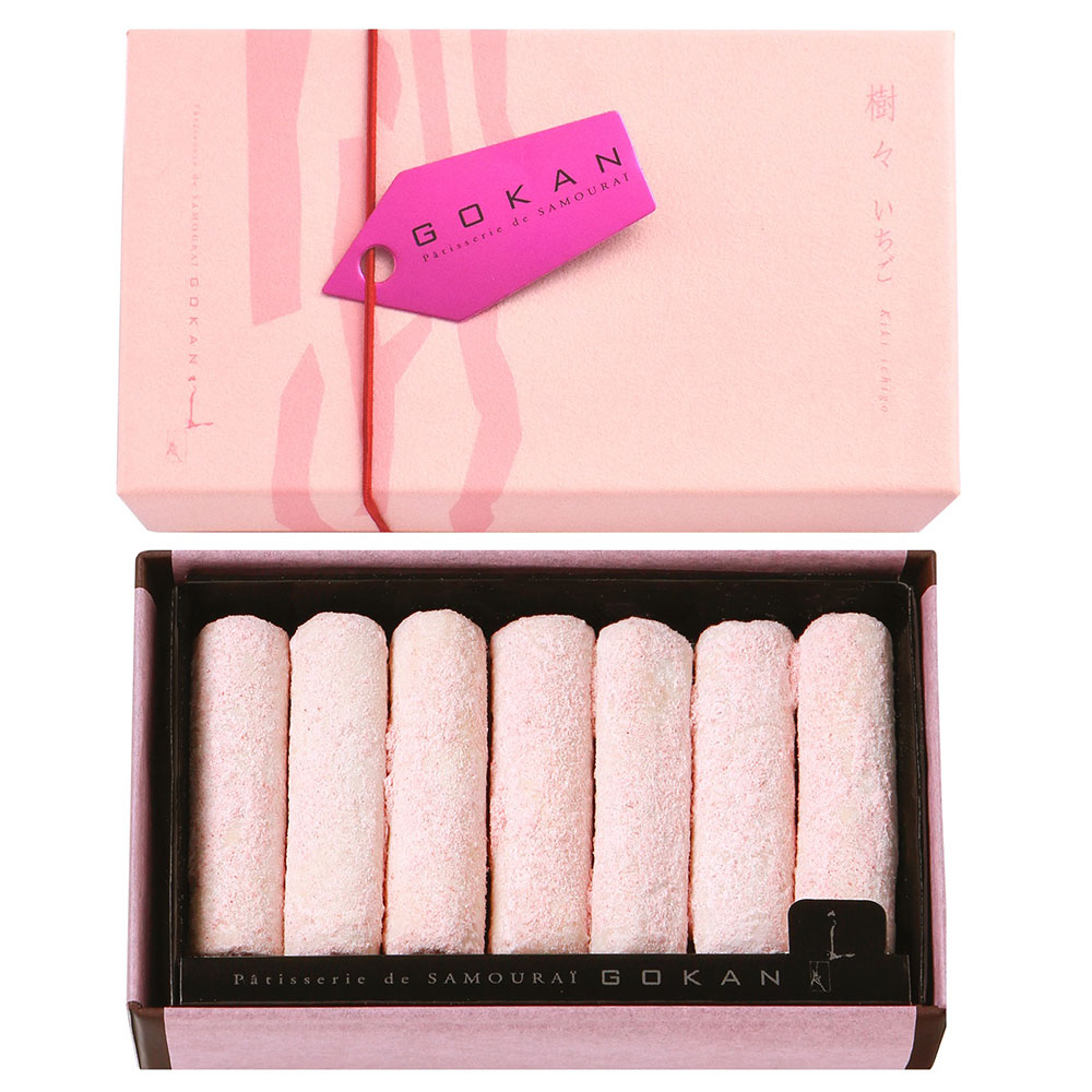 <五感>ならではのかろやかな生チョコレート「樹々」の苺味をおつくりしました。苺のチョコレートとルビーチョコレート、ホワイトチョコレートをブレンドし、苺の甘酸っぱさをそのまま閉じ込めたコンフィチュールを加えて苺の生チョコレートをおつくりしました。ホワイトチョコレートでコーティングし、苺のパウダーと粉糖を絡めた香り高い季節の逸品をお楽しみください。