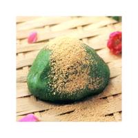 着色料は使用せず、よもぎをたっぷり使った濃い色の中に春の香りがいっぱいつまっています。粒あん入り。