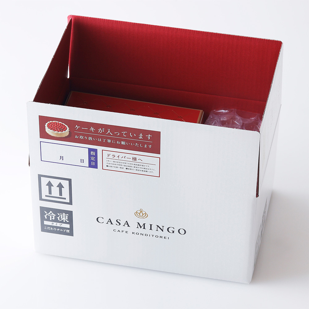 解凍時間の目安:冷蔵(7℃以下)で約5-6時間以上置き、その後室温で30分ほど置いていただくと、チョコレートに艶が出て食べ頃になります。