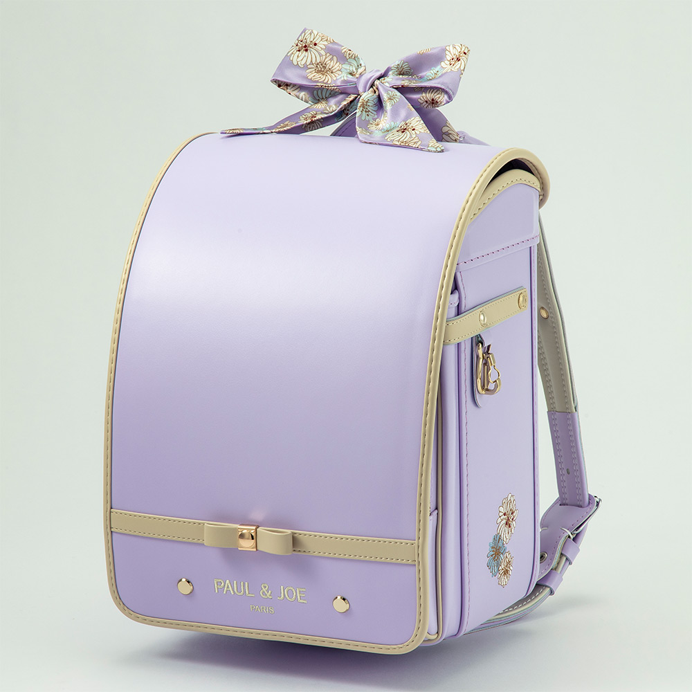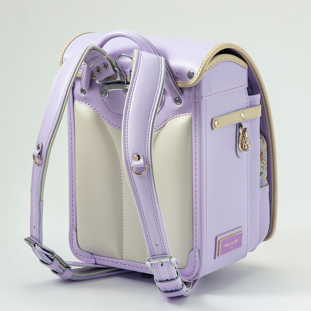かぶせ表のリボンやマチ・かぶせ裏の花の刺しゅう・模様が上品さを演出。アイコンのネコをモチーフにしたチャームがキュート。ミラくるっロック(R)やフィットちゃん(R)といった機能性も兼ね備えたつかいやすいランドセルです。