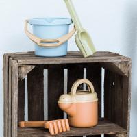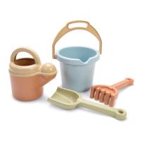 砂遊びや水遊びに大活躍するバケツ・スコップ・くまで・ジョーロの4点セット。お砂を掘る・盛る、お水をすくう・運ぶなどこれさえあれば、すぐにあそびがはじまります。従来の原油を原材料としたプラスチックとは異なり、農薬不使用で育てられたサトウキビを使って製造された「バイオプラスチック※」素材。プラスチック製のストローやビニール袋の使用が世界中で問題となるなか、ヨーロッパでは子どもが使用する遊具にも、エコロジーとエシカルの考え方が広がっています。※植物生まれのバイオプラスチックで、自然に還る生分解性プラスチックではありません。