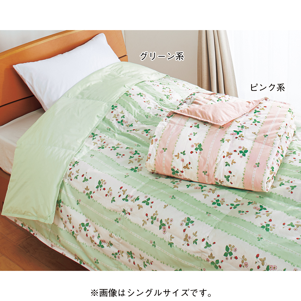 ワイルドストロベリー柄 洗える羽毛肌掛ふとん ハーフ