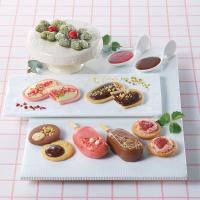 フィリング入りのチョコレートと合わせたサクサク食感のサブレ「ショコララング」、華やかにチョコレートコーティングしたスティックケーキ「ショコショコラ」、てんとう虫のチョコレートが愛らしいクローバー型のさくさくパイ「クローバーパイ」、ドレスのチュチュのような愛らしい苺のタルト「チュチュタルト」、チョコレートを入れて作ったさくさく食感のプレーン生地とココア生地の2種のサブレ「ショコラサブレ」。
