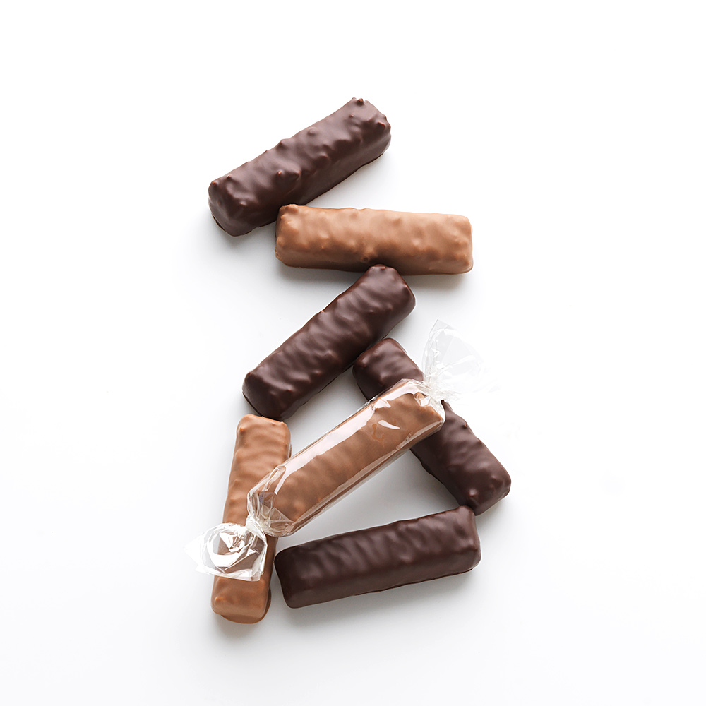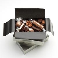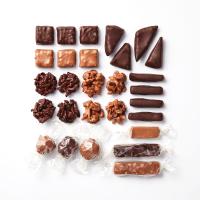 ロシェ(ダーク)×3個、ロシェ(ミルク)×3個、オレンジコンフィ(ダーク)×4個、グリニョッティン(ダーク)×4個、グリニョッティン(ミルク)×4個、ジンジャーコンフィ(ダーク)×4個、マカダミアプラリネ(ミルク)×2個、マカダミアプラリネ(ダーク)×1個、ブシェ(アーモンド&セサミプラリネ)×1個、バーグルモン(クルミのプラリネ×塩バターキャラメル/ダーク)×1個、バーグルモン(ピーナッツプラリネ×塩バターキャラメル/ミルク)×1個 計28個入(11種)