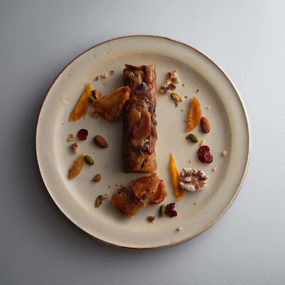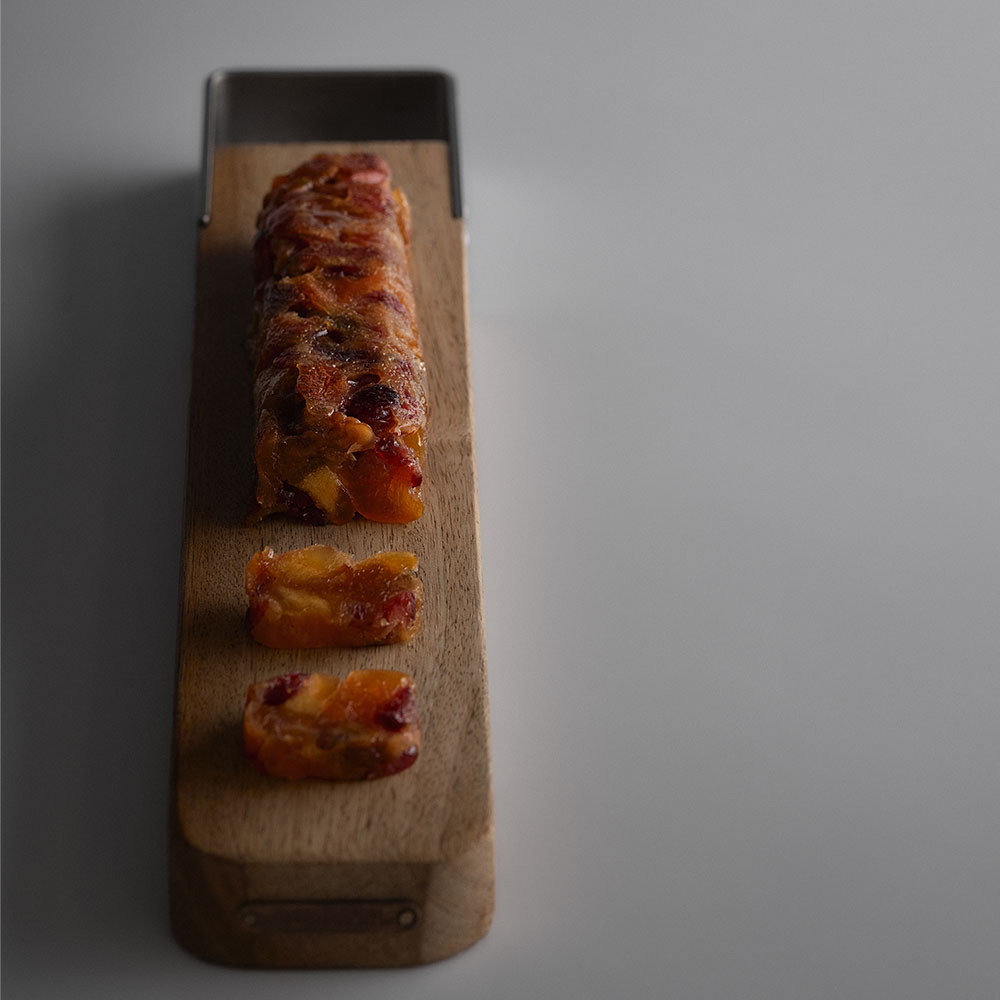 洋梨、桃、さくらんぼ、杏、マンゴー、クランベリーなどのドライフルーツを「加賀梅酒」にじっくり漬け込み、焼き上げた和テイストのベラベッカ。