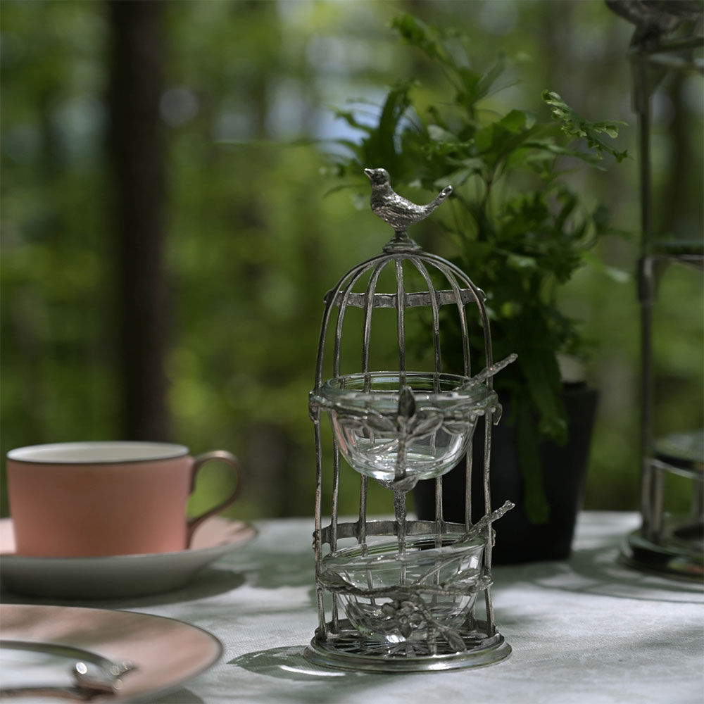 鳥かごモチーフが絵になるスパイスホルダー。スパイスはもちろん、ジャムとクロテッドクリームを入れてスコーンを楽しむ。アフタヌーンティーにいかがですか。