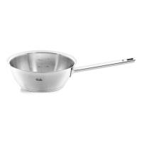 「無水調理を可能にする重厚なフタ」「熱くなりにくいハンドル」「液だれしない気配り設計」「高品質ステンレスを使用したサテン仕上げの美しいボディ」「調理に便利な目盛」「熱ムラを作らず、効率よく熱を通すフィスラー独自の構造」で料理のプロが満足する機能をそのまま継承しました。煮る、焼く、炒める、蒸すなど万能に使える片手鍋。側面が斜めラインなので繊細な食材も形がくずれることなく均等に混ぜることができます。