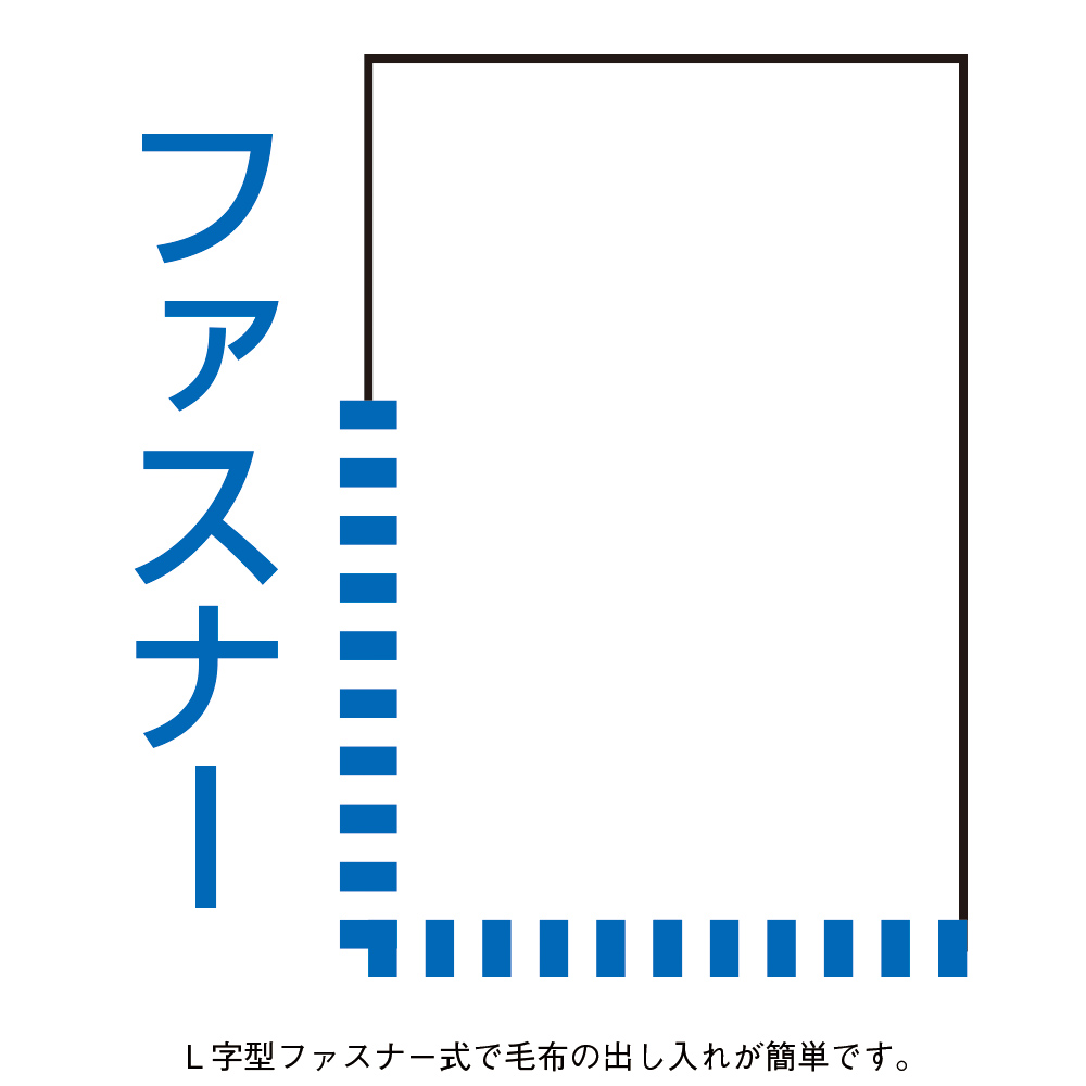 L字に開くファスナーで着脱が簡単です。毛布と相性のいい綿100%ガーゼ地。
