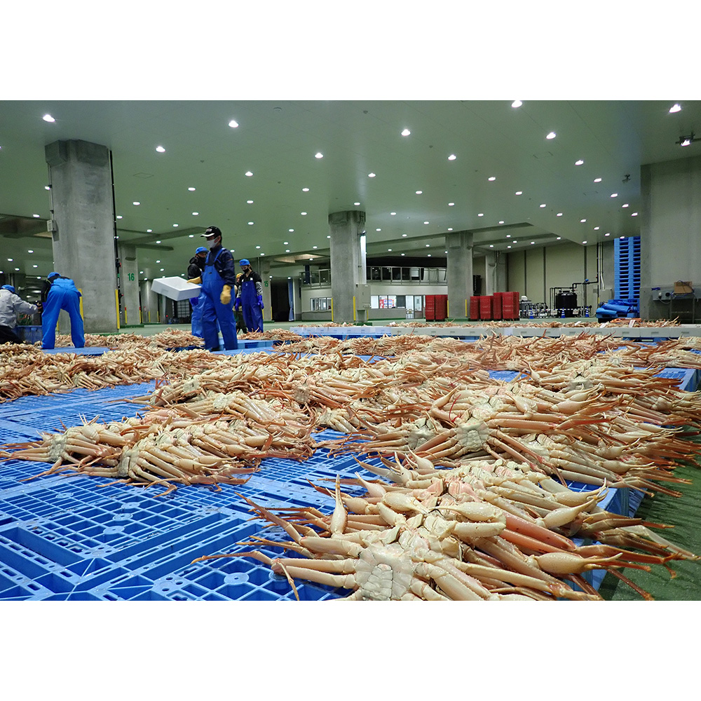 松葉がに漁は11月上旬から3月の波の高い冬の日本海で行われます。松葉がにの大きい殻にぎっしりつまった身は、歯ごたえがしっかりして、茹でても、焼いても食べ応え抜群。中のミソもお酒やご飯のお供にぴったりです。ぜひお試しください。