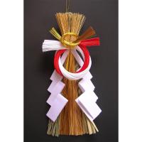 紅白と金の水引に、神聖な領域を示す白の御幣が付いた、シンプルなお正月飾りです。