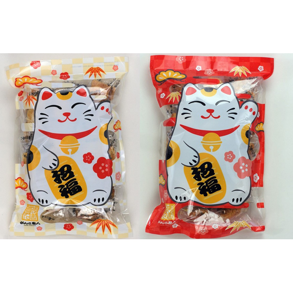 福袋(ときわ醤油9枚・のりもち95g・海苔ミックス12枚・薄焼き醤油9枚 計4種) 、彩味揃(5種類のおかき詰合せ)200g、福招き揃赤(胡麻・白醤油・醤油・海苔巻・海老)5種入計200g、福招き揃白(塩サラダ・胡麻・海老・堅め醤油・海苔巻・醤油サラダ)6種入計200g、福々亀(亀の形をした醤油おかき)10個入