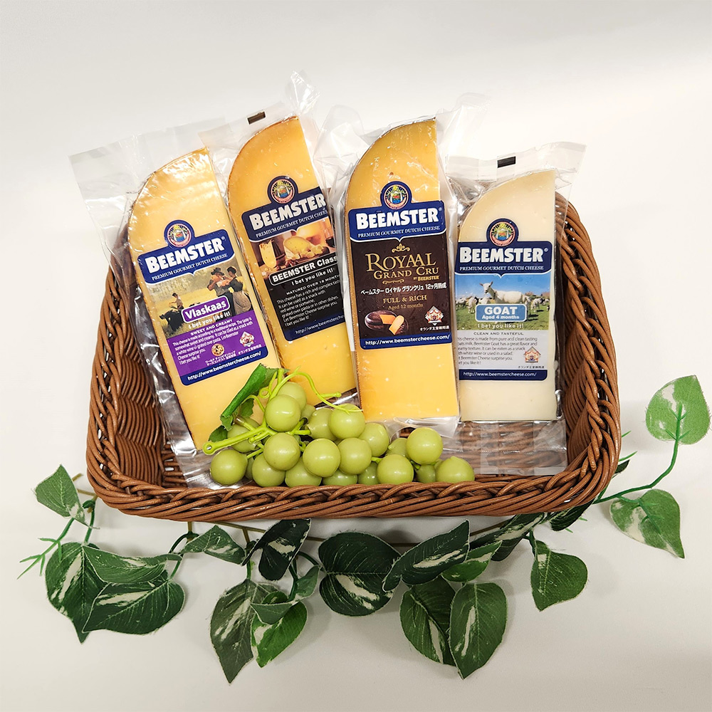 オランダ王室御用達のベームスターブランドから、人気の4種類をご用意いたしました。人気No.1のゴーダチーズ、ブラスカス。ミルクの甘味が楽しめる12カ月熟成のロイヤルグランクリュ、18カ月熟成による旨味たっぷりのクラッシック。ミルキーな味わいのゴートの贅沢な4種食べ比べです。