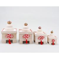 今の暮らしのスタイルにすっと溶け込むモダンな鏡餅です。新しい年を晴れやかな気持ちで迎えるために、日本で日本の材料にこだわって製作されたとっておきの鏡餅を飾りませんか。あえて漂白や塗装をせずに美しいシナ材を丁寧に仕上げた餅。ダイダイは絹の唐打紐を「亀結び」して、魔除けと長寿と富貴を象徴しています。三宝に付けた飾り結びは、「菊結び」で延命長寿を表します。桐材でつくられた外箱を、三宝としてご使用ください。出番が終わったら、大きい餅の中に小さな餅、ダイダイをコンパクトに収納することが出来ます。存在感のある特大サイズです。