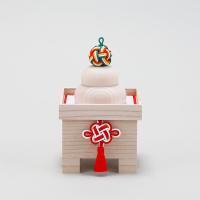 凛とした木の美しさと鮮やかな組紐の飾りのインパクトが魅力のモダンな鏡餅です。