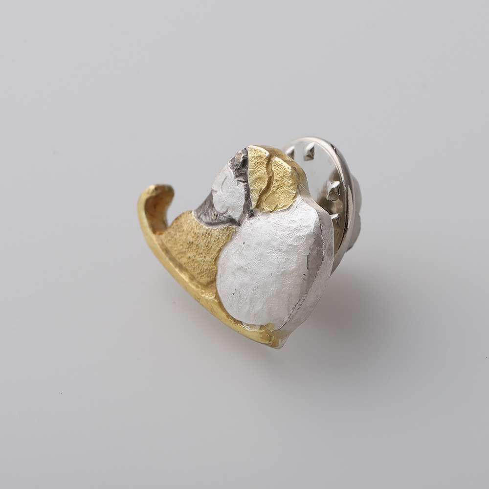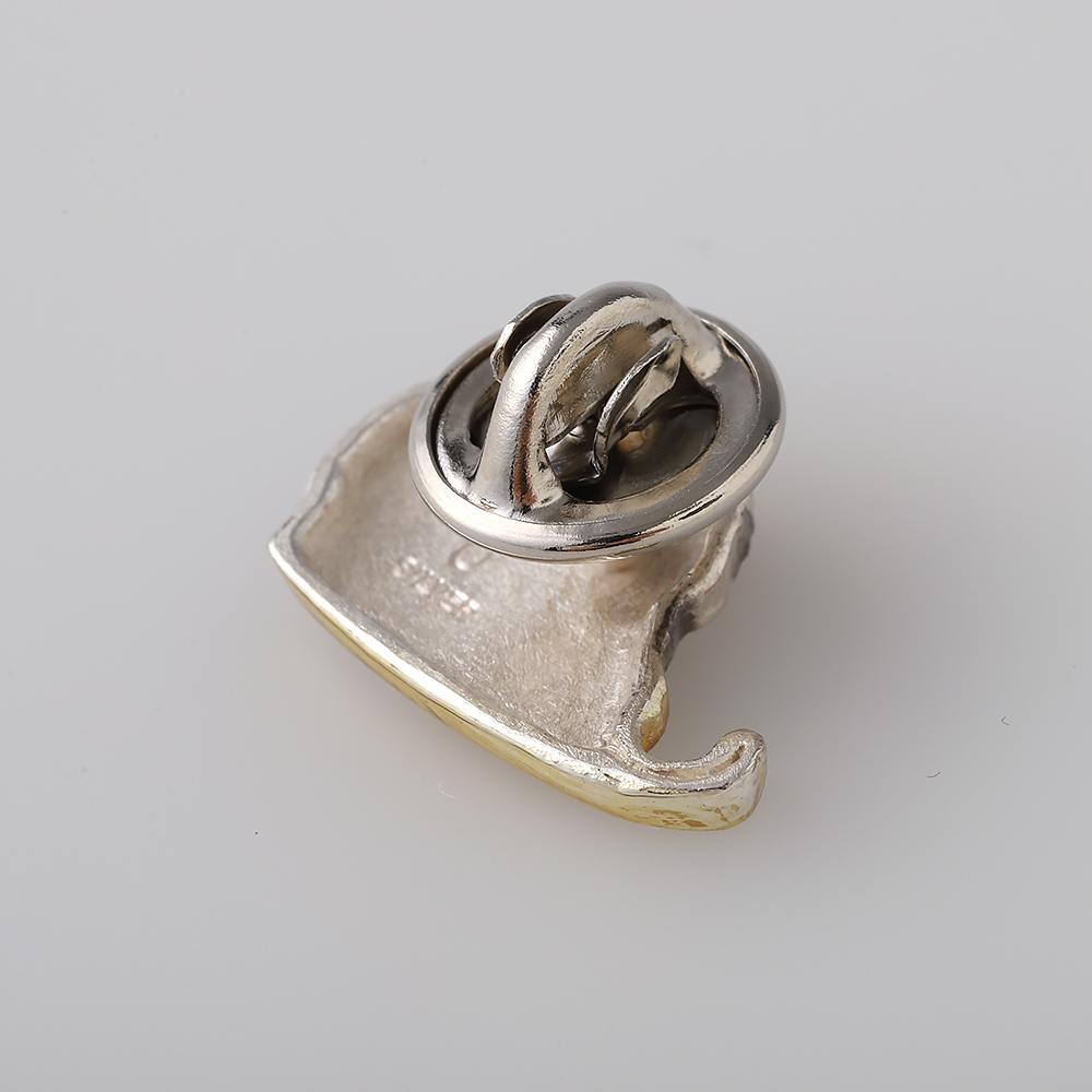 ソリに乗って夜空を駆け抜けるサンタクロースをモチーフにした、可愛らしくもしっかりとした存在感のあるピンブローチです。ほどよいサイズ感で、ジャケットやコートなどの襟元やお帽子につけるワンポイントアクセサリーとして、日常使いはもちろん、パーティーなど特別な機会での着用、ギフトにもおすすめです。伝統的な彫金の技法である「タガネ」を用い、全体に艶消しの彫りを施し、メリハリのある磨きを入れることにより、シルバーならではの濃淡のある奥行きを表現しています。