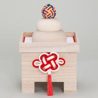 今の暮らしのスタイルにすっと溶け込むモダンな鏡餅です。新しい年を晴れやかな気持ちで迎えるために、日本の材料にこだわって製作されたとっておきの鏡餅を飾りませんか。あえて漂白や塗装をせずに美しいシナ材を丁寧に仕上げた餅。ダイダイは絹の唐打紐を「亀結び」して、魔除けと長寿と富貴を象徴しています。三宝に付けた飾り結びは、「菊結び」で延命長寿を表します。桐材でつくられた外箱を、三宝としてご使用ください。出番が終わったら、大きい餅の中に小さな餅、ダイダイをコンパクトに収納することが出来ます。下から2番目の中サイズです。