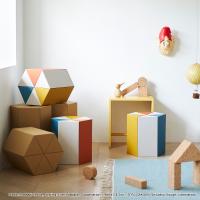 1965年にデザインされたリキスツールは、椅子としての十分な耐荷重を持ちながらも、子供が積み木のようにして遊ぶことができるほど軽量なスツールです。段ボールというリサイクル可能な素材を組立構造によって堅牢さを強化。発売当時には「4つのスツールで象の体重を支えられる」と話題になりました。接着剤を使わず、山折り・谷折り・はめ込み作業だけで組み立てることができます。分解も簡単で、折りたたんでコンパクトに収納も可能。公共施設やワークショップなどで広く使われており、表面に絵を描くこともできるので、自由な発想を重視する保育園・幼稚園でも採用され、お子様でも安全に、楽しみながら作れるスツールです。