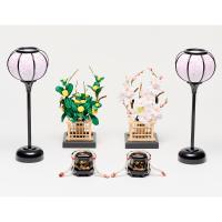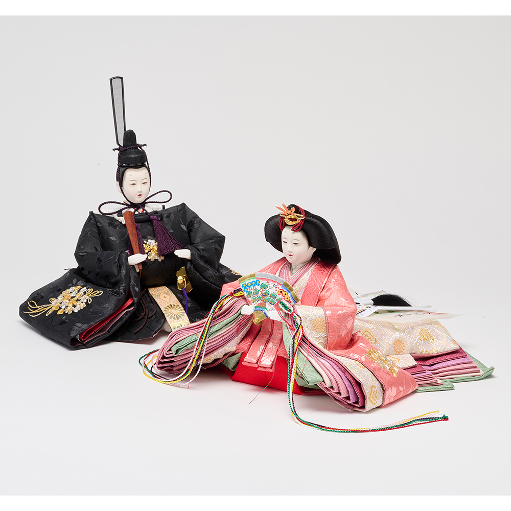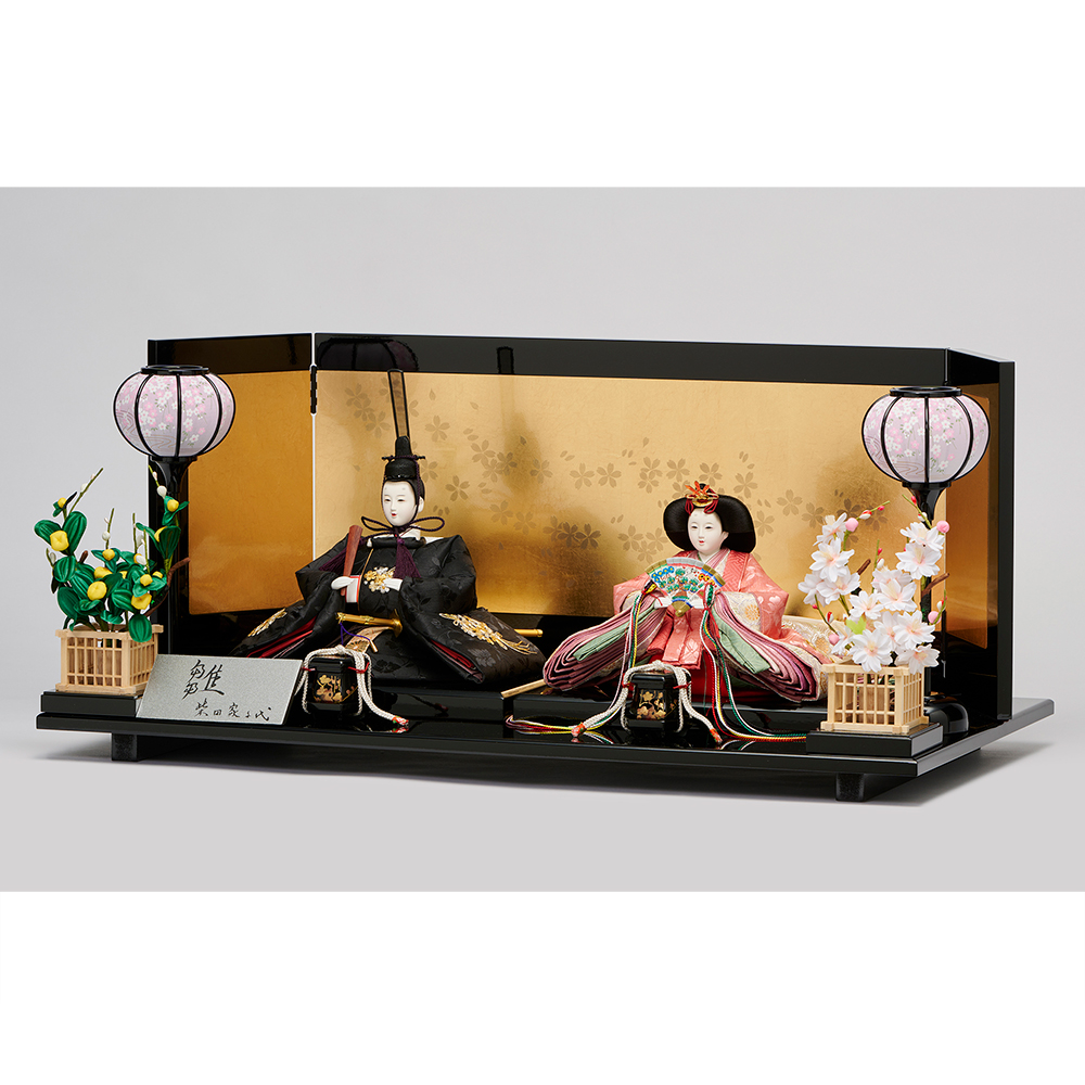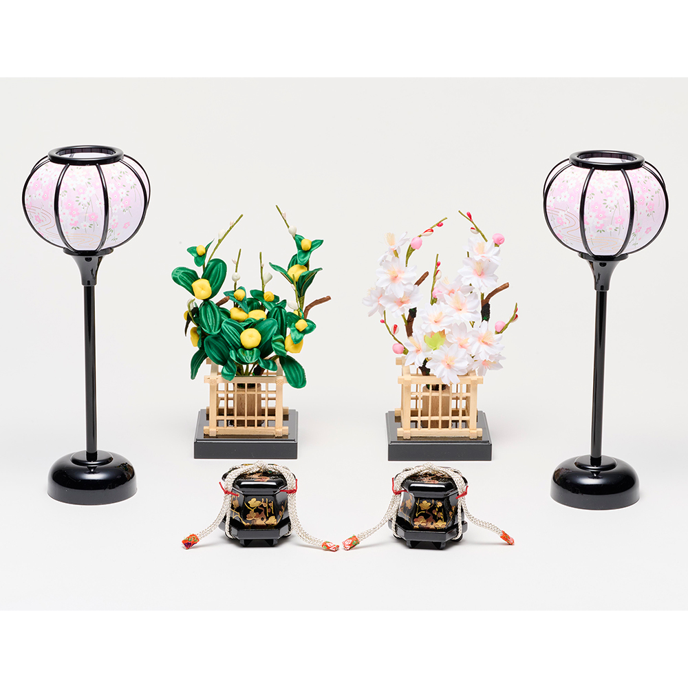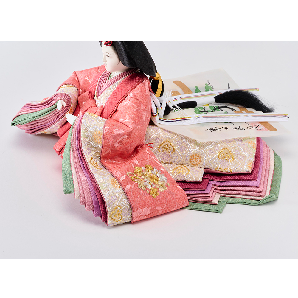 梅とリボンの刺しゅう、お揃いの衣裳が華やか。春のお祝いを愛らしさでいっぱいに。