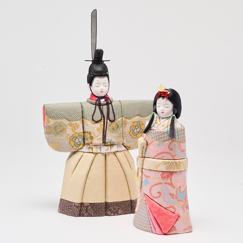 愛らしくも個性的な印象の立雛飾り。座り雛とはまた違った趣を感じさせます。