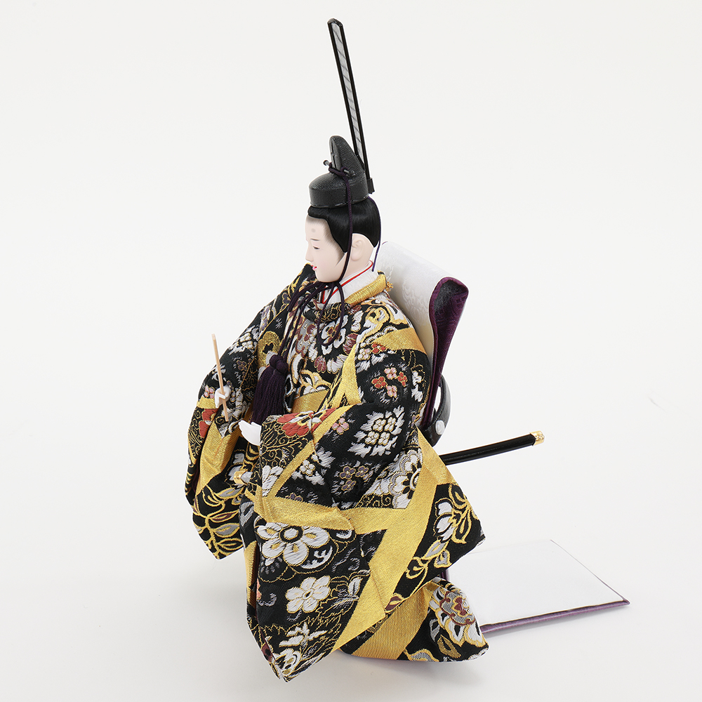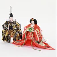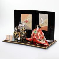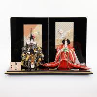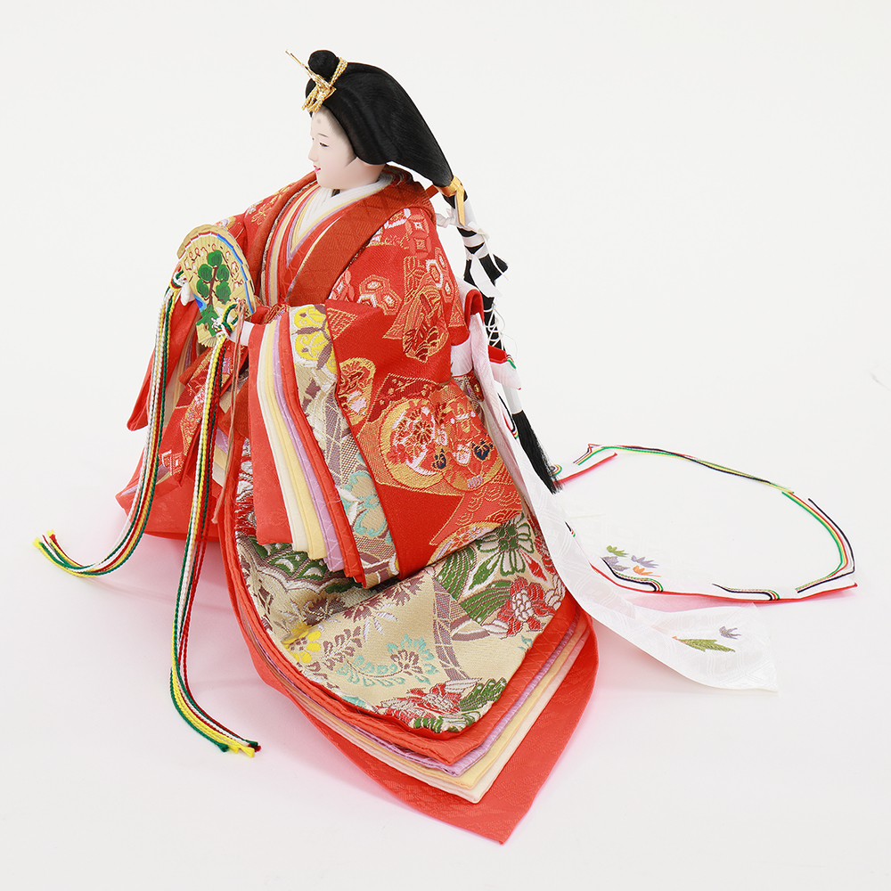 艶やかに仕立てられた、豊かな趣の衣裳が映えて。上品な佇まいの立雛飾りです。屏風にはおめでたい鶴や牡丹・桜などの花々が色どりを添えています。
