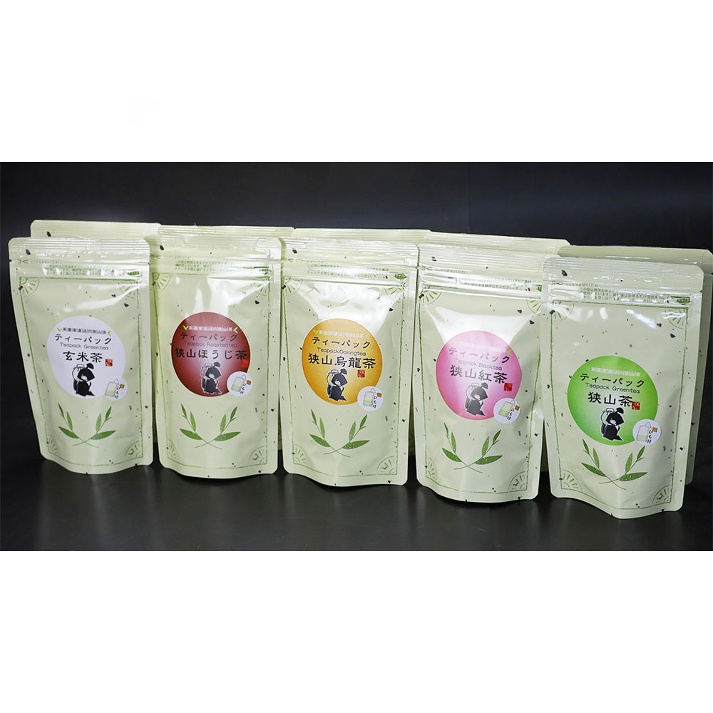 狭山茶ティーパック(3g×15個)×2袋、狭山紅茶ティーパック(3g×15個)×2袋、、狭山ウーロン茶ティーパック(3g×15個)×2袋、狭山ほうじ茶ティーパック(3g×15個)×2袋、玄米茶ティーパック(3g×15個)×2袋
