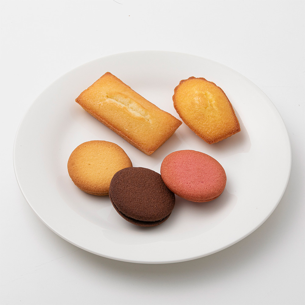 フィナンシェ(バニラ) 3個・マドレーヌ 3個・ラングドシャ(プレーン、チョコ、ストロベリー) 各2個