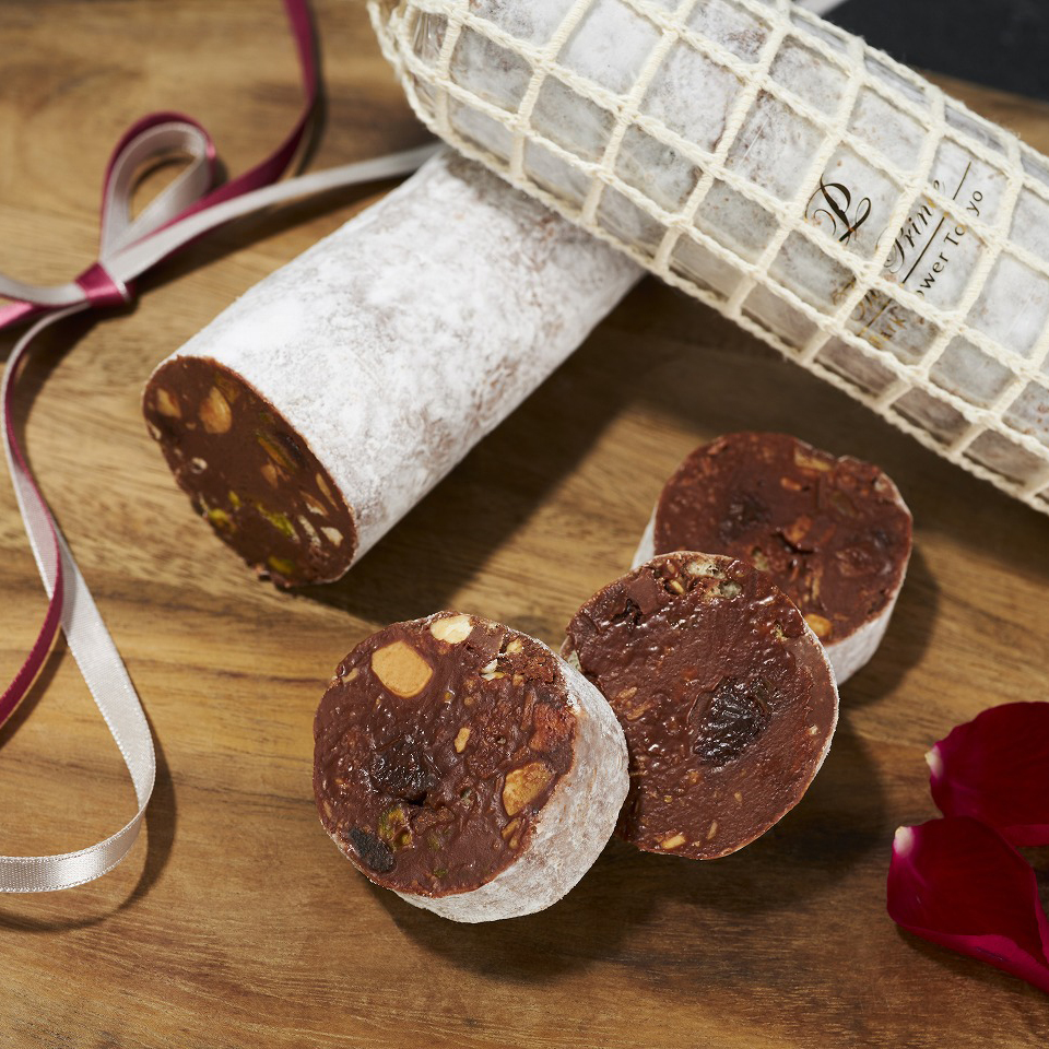 ナッツ、シリアル、ドライフルーツをチョコレートで包みサラミに見立てて仕上げた南イタリアの伝統菓子。それぞれの食感、風味がチョコレートにより一層美味しさが増します。