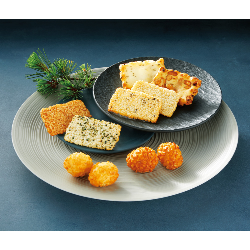 慶長(醤油・しぶき海苔・胡麻・うすくち醤油各12)、慶凰(醤油・塩各5)、豆柿・かきもち昆布各4
