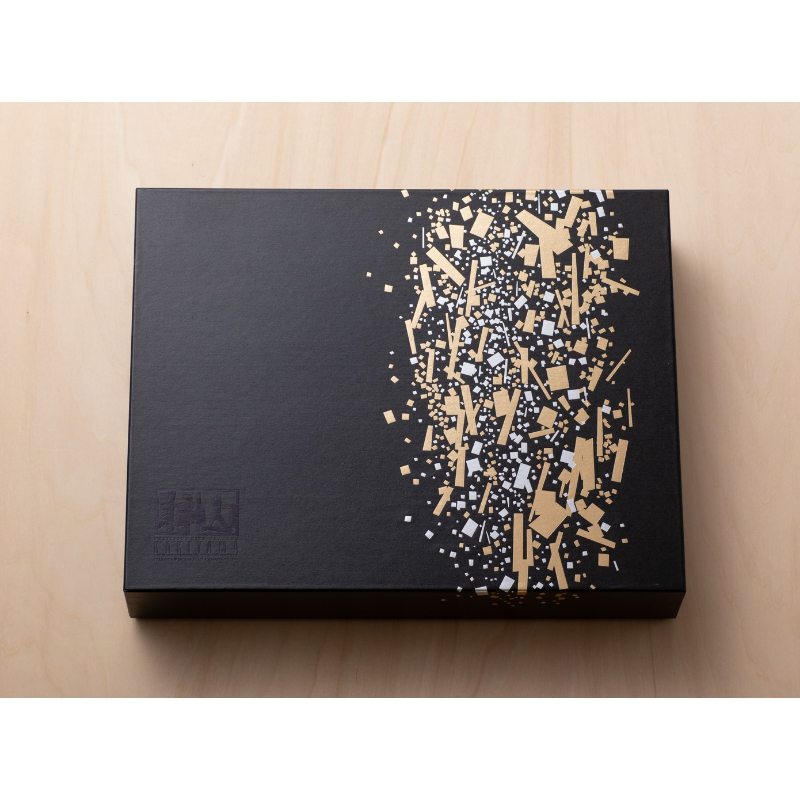 赤坂柿山の一番人気のロングセラー。薄焼きおかき「慶長」とアーモンドをおかきで丸ごと包んだ「慶凰」、もち米の風味をいかした「かきもち」を詰め合わせました。黒地に金銀振りの上品で高級感のあるギフトボックスですので、シーンを選ばずご利用いただけます。