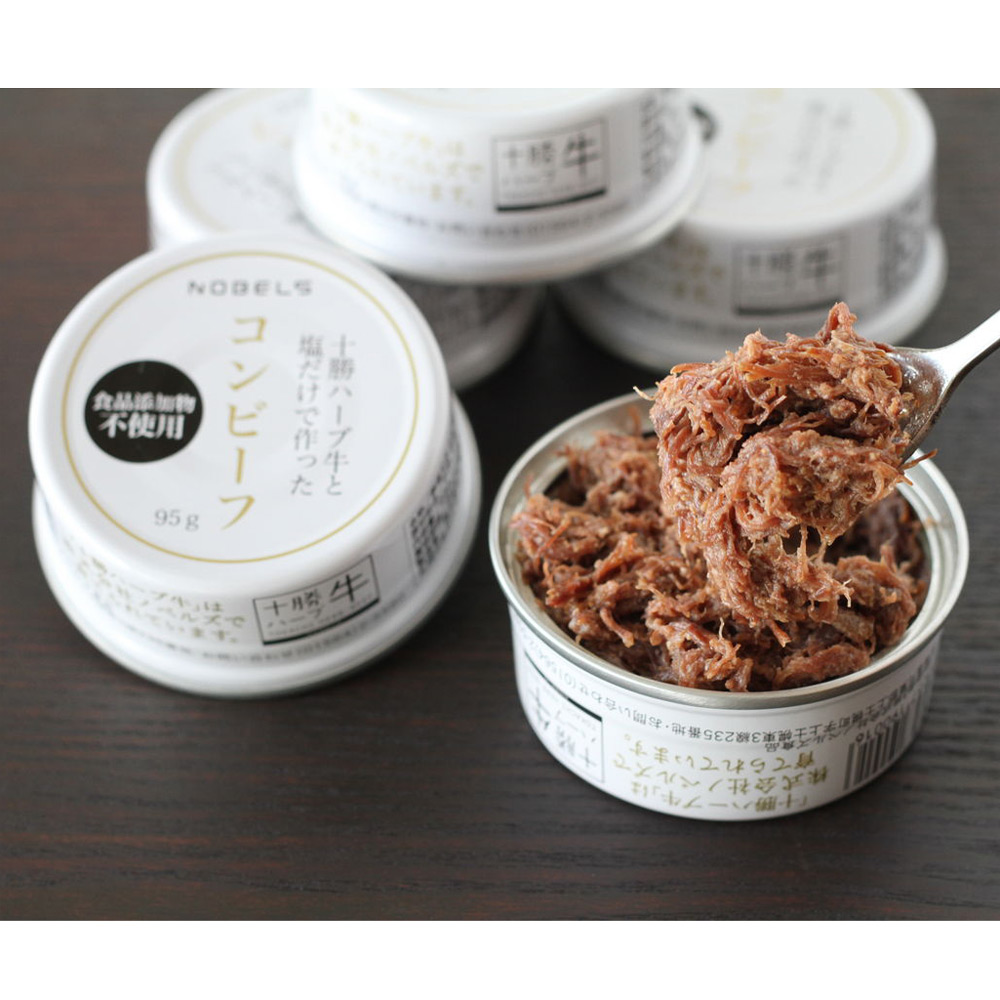 十勝ハーブ牛と塩だけで作ったコンビーフ95g×2缶、十勝ハーブ牛と黒胡椒で作ったコンビーフ95g×1缶
