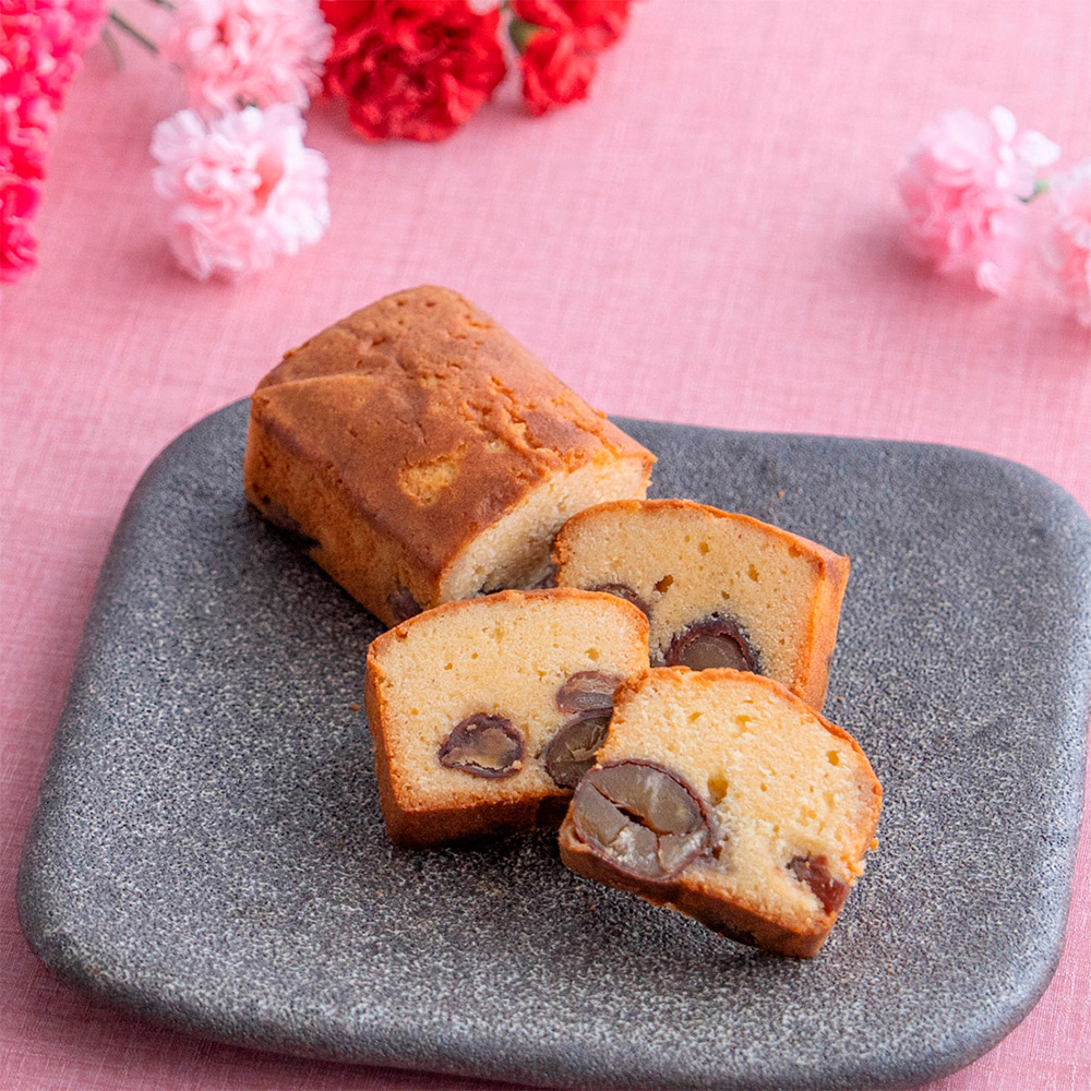 発酵バターと和三盆糖を使用し、丁寧に焼き上げる音衛門のパウンドケーキに国産和栗を散りばめました。仕上げには香り高いアップルブランデーを効かせています。一口食べればしっとりとしたバターの香りと、栗の豊かな味わいが広がります。上品な甘みはコーヒーや紅茶と相性抜群で、大切な贈りものとして喜ばれる逸品です。