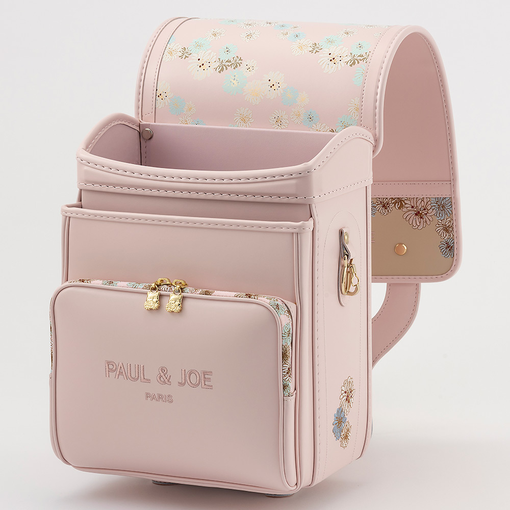 高級感のあるかぶせ表のロゴと柄のグラフィカルな刺しゅうが大人カワイイを演出。付属のスカーフでその日の気分によってアレンジが可能です。フィットちゃんや口前補強といった機能性も備わったキューブ型ランドセル。