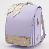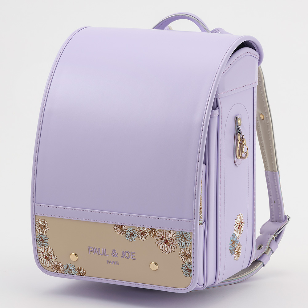 高級感のあるかぶせ表のロゴと柄のグラフィカルな刺しゅうが大人カワイイを演出。付属のスカーフでその日の気分によってアレンジが可能です。フィットちゃんや口前補強といった機能性も備わったキューブ型ランドセル。