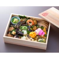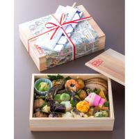 <献立内容>紅白ご飯(赤飯、白蒸し)、穴子手まり寿司、鶏そぼろ三つ葉入り厚焼卵、鱒幽庵焼木の芽、千代結び蒲鉾、小芋旨煮空揚、合鴨ロース柔か煮、尼子南蛮漬け、小茄子田楽、卵黄茶巾絞り、カマス風干酒焼、鯛一塩大根おろし和え、青竹串刺し(車海老・胡瓜・蒟蒻煮)、青海苔麩分葱辛子酢味噌和え、湯葉揚げ旨煮山椒焼、一寸豆塩茹で、奈良漬、生姜甘酢漬
