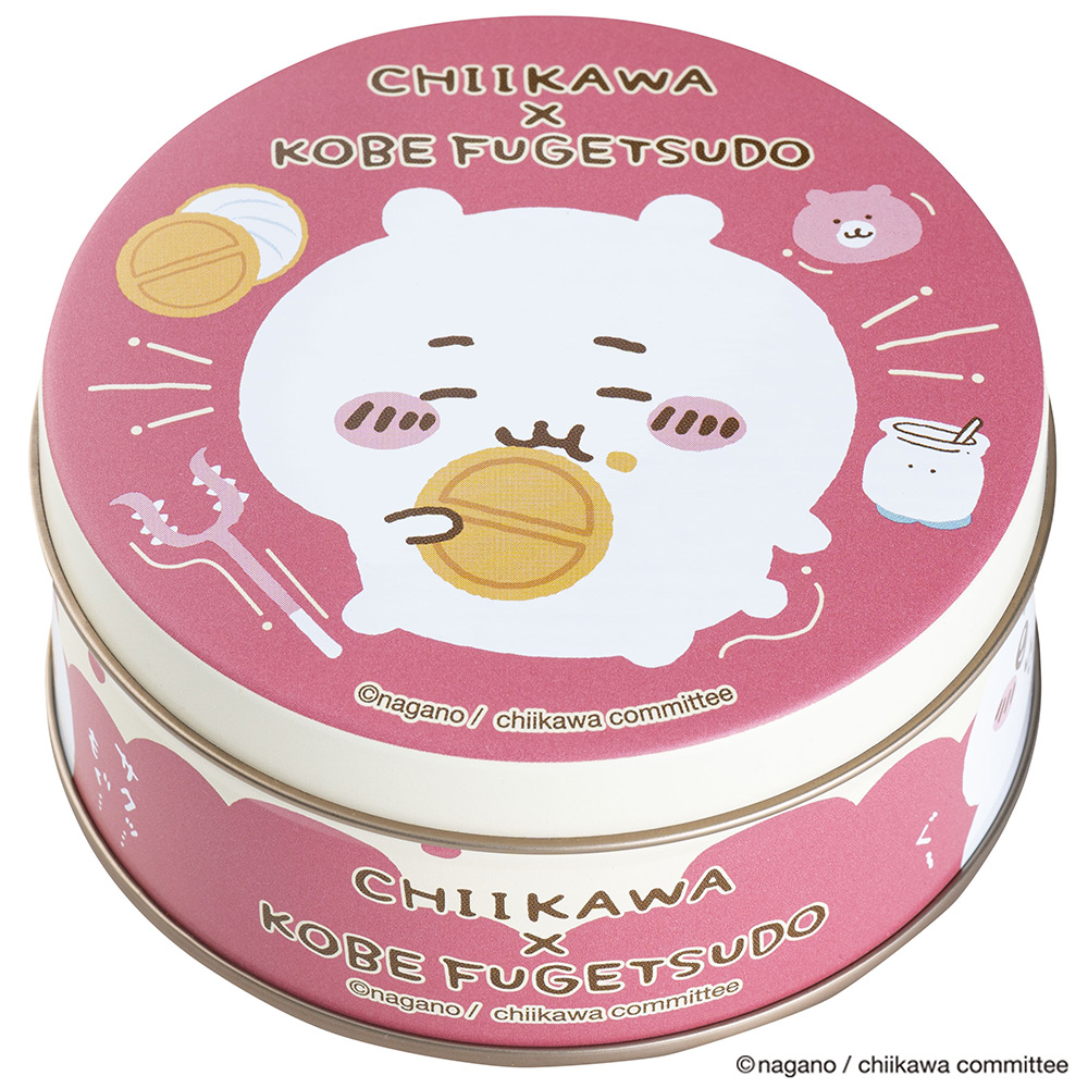 ゴーフルを美味しそうに食べる、ちいかわたちをデザインしたミニゴーフル缶。そろえて楽しい3種類の缶入りパッケージは、神戸風月堂のオリジナルデザインです。バニラ・ストロベリー風味・チョコレートの3種類の味をアソートした、サクサクと香ばしいプティーゴーフルをお楽しみください。