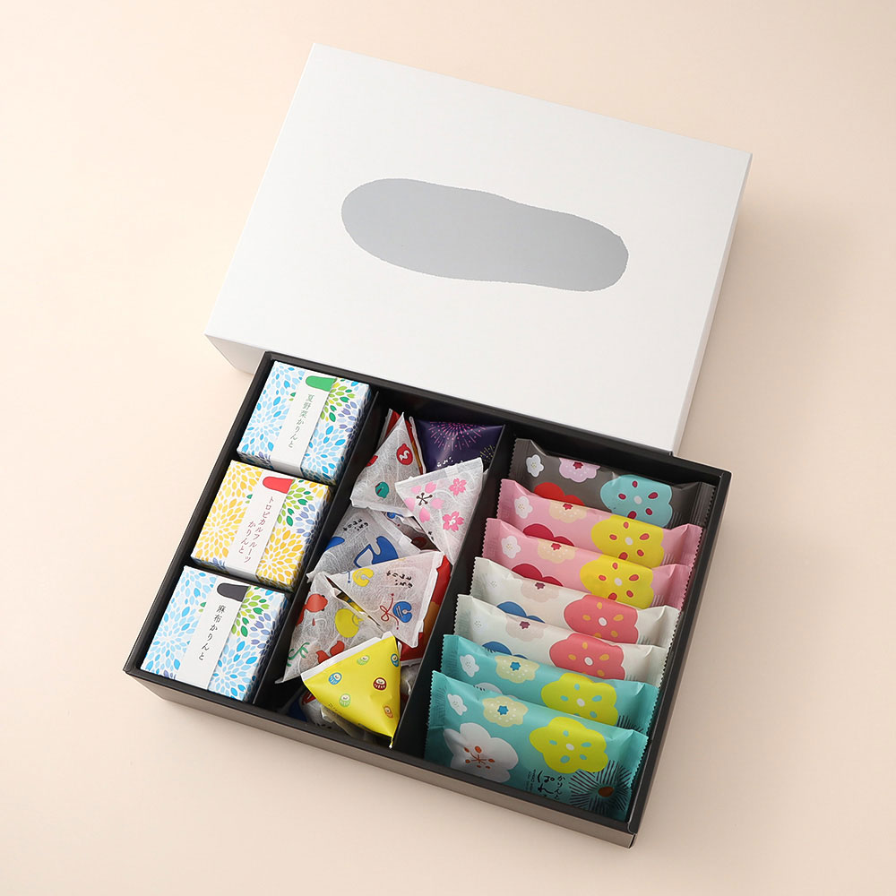人気の「キューブ」「かりんといろは」「かりんとぱれっと」をそれぞれセレクトして詰合せました。夏季限定のキューブ箱入りです。父の日の掛け紙をお付けしてお届けします。