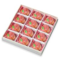 桃の果肉がごろっと入った果汁たっぷりの特製白桃餡。しっとりやわらかい生地で包み込みました。一口ほおばると、お口の中でシャキシャキとした果肉感とジューシーな風味がやさしく溶け合います。桃のかたちのお饅頭にコーティングで艶を加え、最中製の葉を乗せることで、可愛らしい白桃の見た目を再現しました。