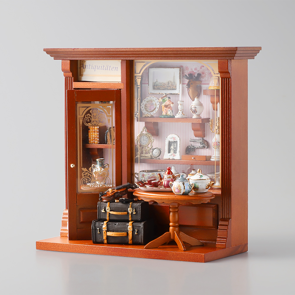 70年以上にわたって陶器製品の生産を自社の工場で手掛けてきた<ロイターミニチュア>。同社を代表するミニチュア陶器は、17人もの熟練職人の手を経て作られています。まるで使用できそうなほど精密なミニチュア陶器は世界中の多くのコレクターを虜にしてやみません。街角にひっそり佇み、ついつい覗いてみたくなるような、そんなアンティークショップがミニチュアサイズで表現されています。小さく可愛らしいアイテムの数々はずっと眺めていられます。そんなどこか懐かしく、見ているだけでも幸せな気分になるようなミニチュア陶器は、インテリアとして飾っても、粋な贈りものとしてもおすすめです。