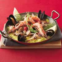 「健康と美容を食卓から変えていく」をテーマに、堀知佐子氏が運営する<ちさこ食堂>。海老、イカ、ムール貝、あさりなど海の幸を贅沢に使用した、フライパンでできる簡単パエリアキットです。※お米は商品に含まれません。