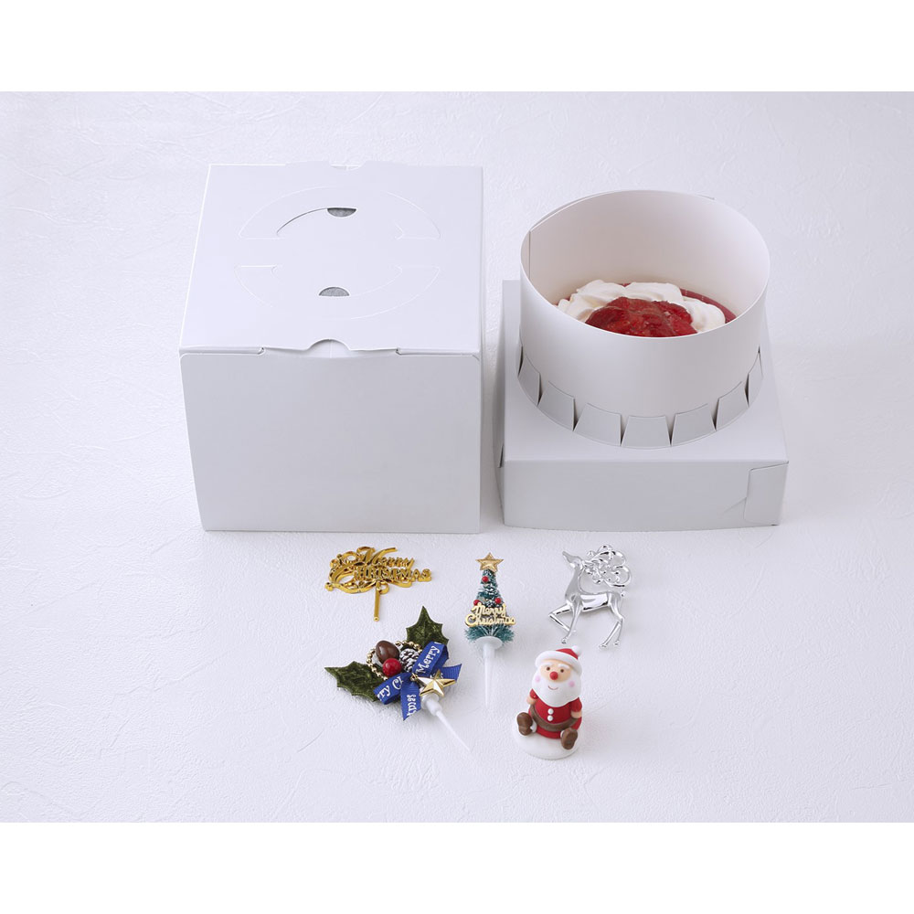 【冷凍便でお届けします。解凍まで時間がかかりますのでご注意ください。】ふんわりと焼き上げたスポンジにくちどけの良い生クリームを使用した苺のショートケーキです。クリスマスの飾りつけもキュート。
