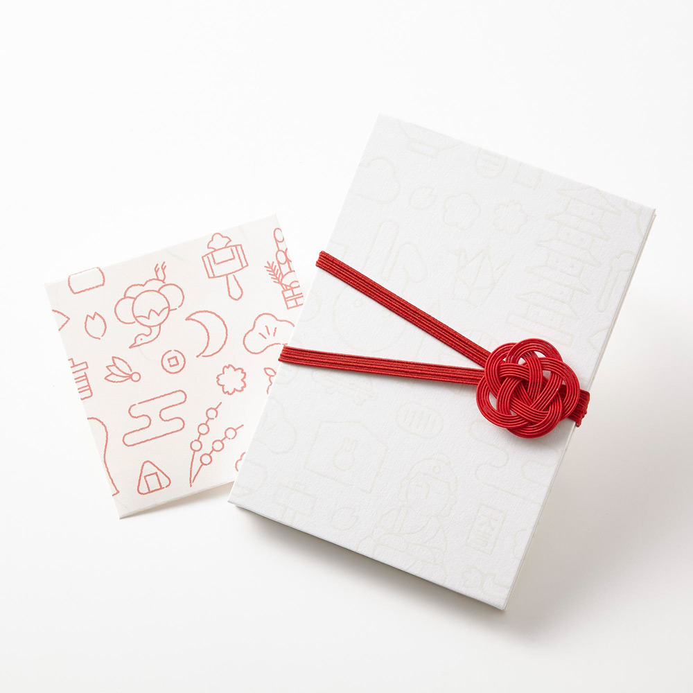 厳選された北海道の真昆布を極細に刻んだ名品「小松こんぶ」と、<かつおの天ぱく>本枯節を使用した贅沢なふりかけ「御所ふりかけ」を、三三屋デザインの特別仕様掛紙で。かわいい掛紙と梅むすびの飾りゴムは捨てずにプラスアルファで喜ばれそう。